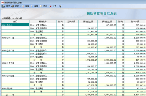 舉個例子,有單位需要對主營業務收入、主營業務成本、營業費用等科目進行部門考核。我們先看看用a9財務管理軟件標準版,實現部門考核方法后,得到如下參考分析樣表: